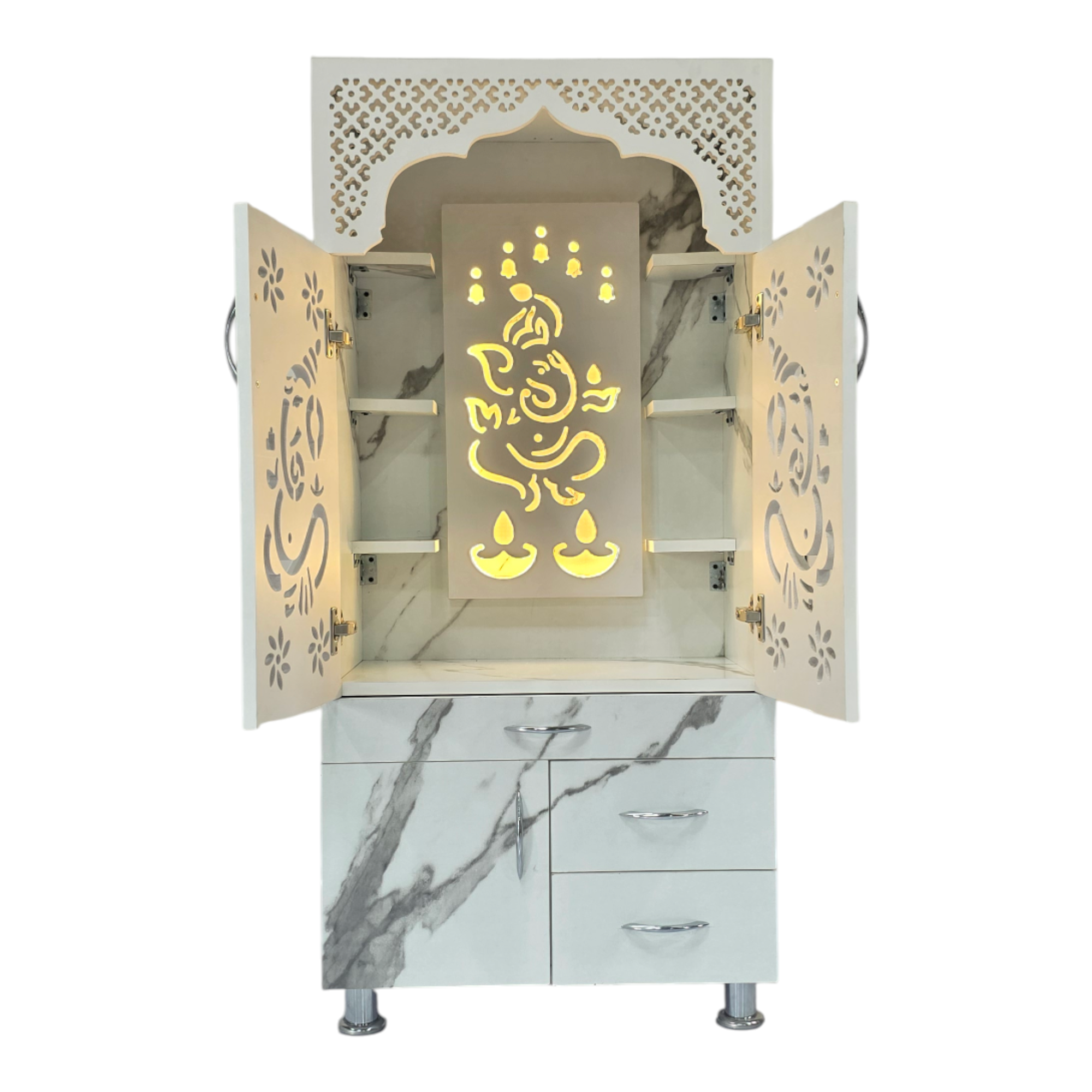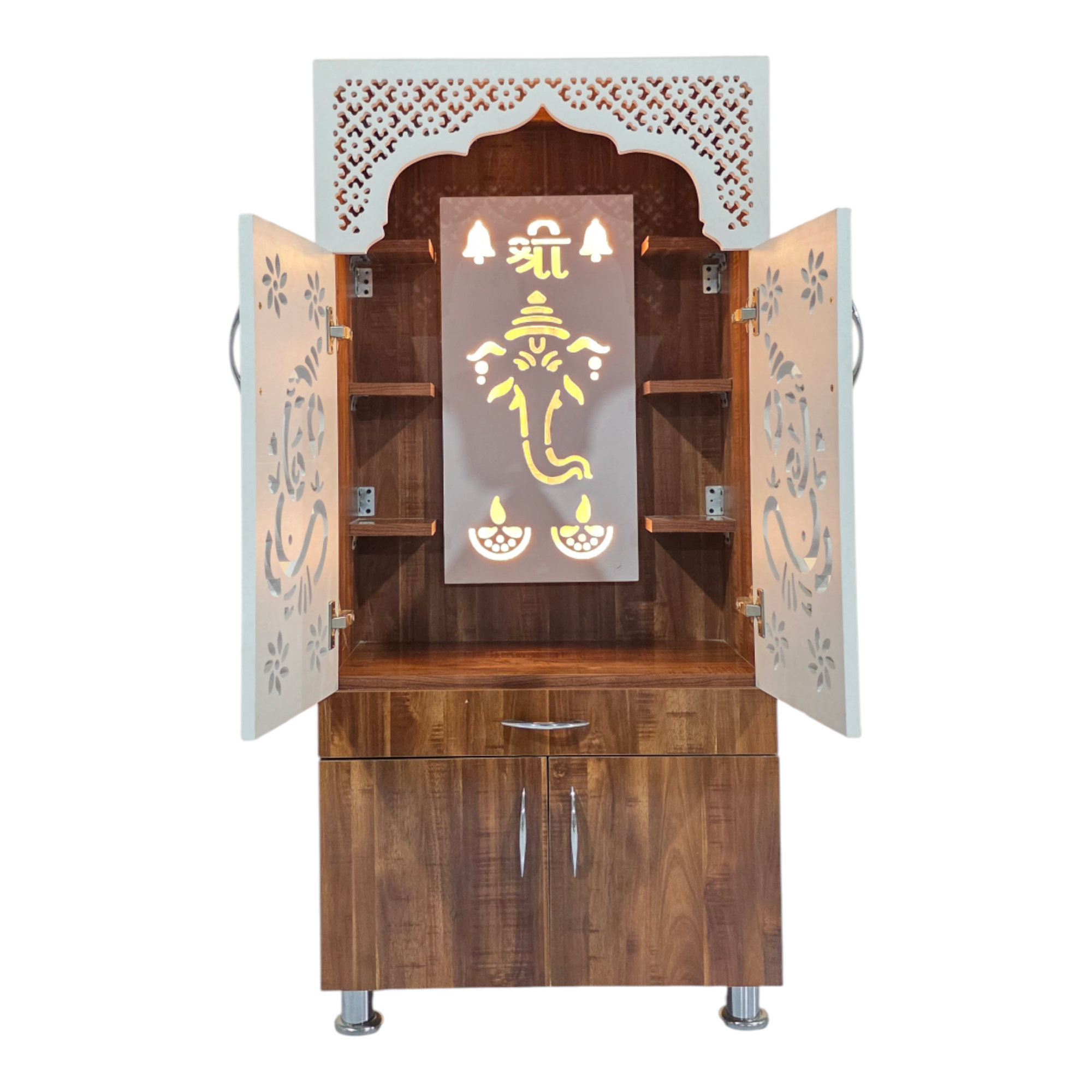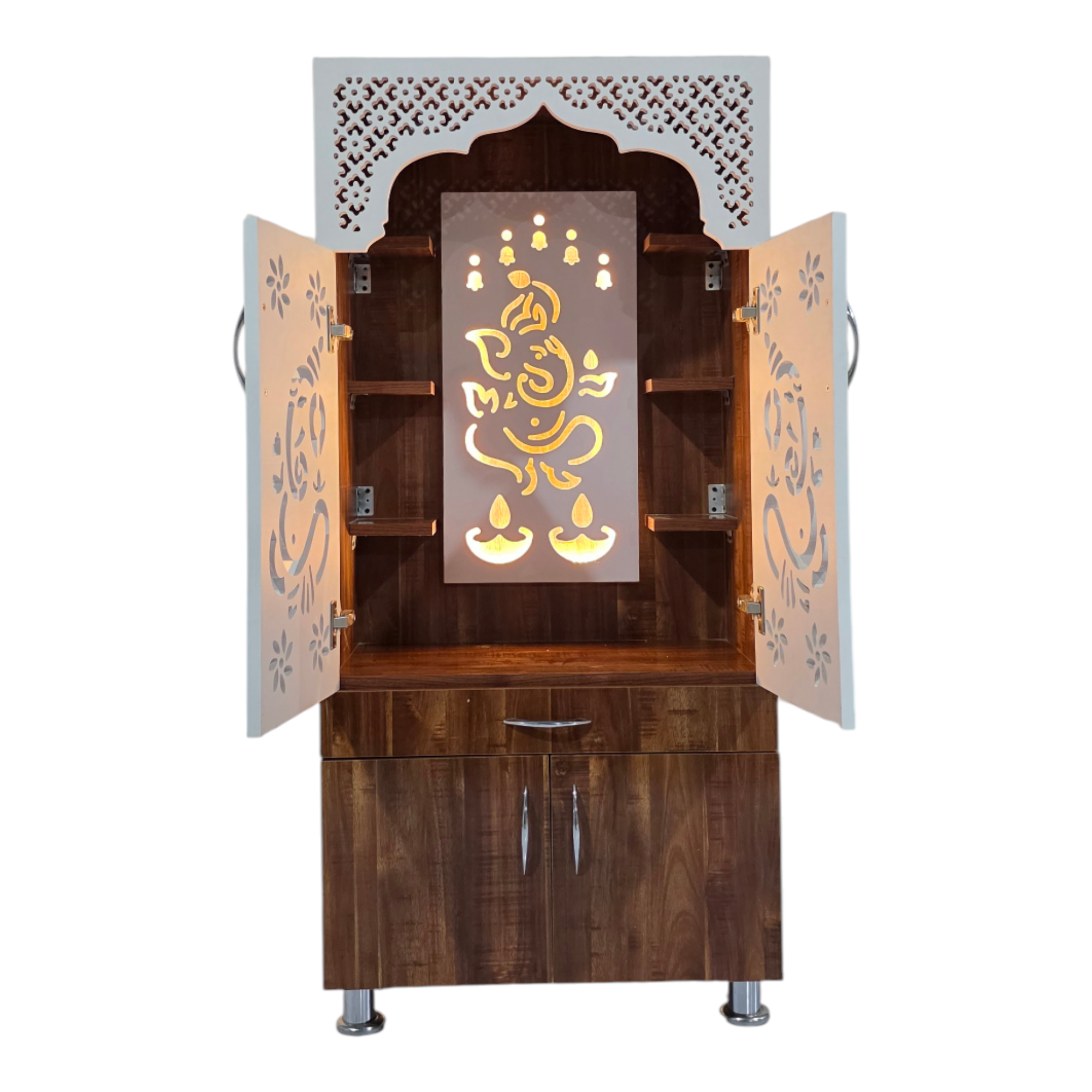 Blend timeless spiritual aesthetics with contemporary craftsmanship for a mandir that suits your home’s style.