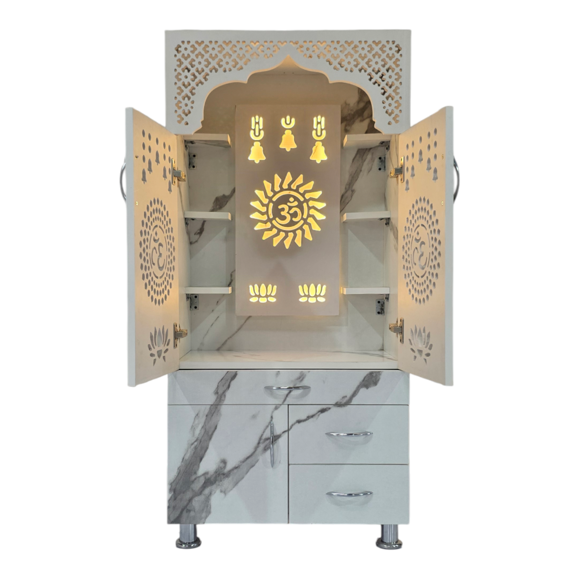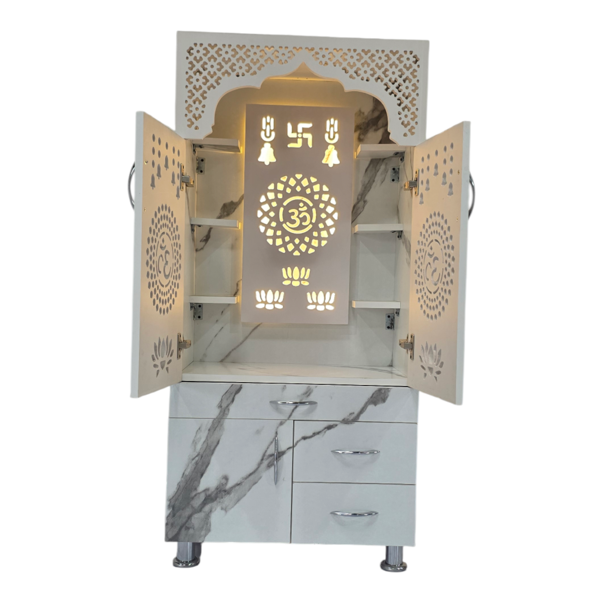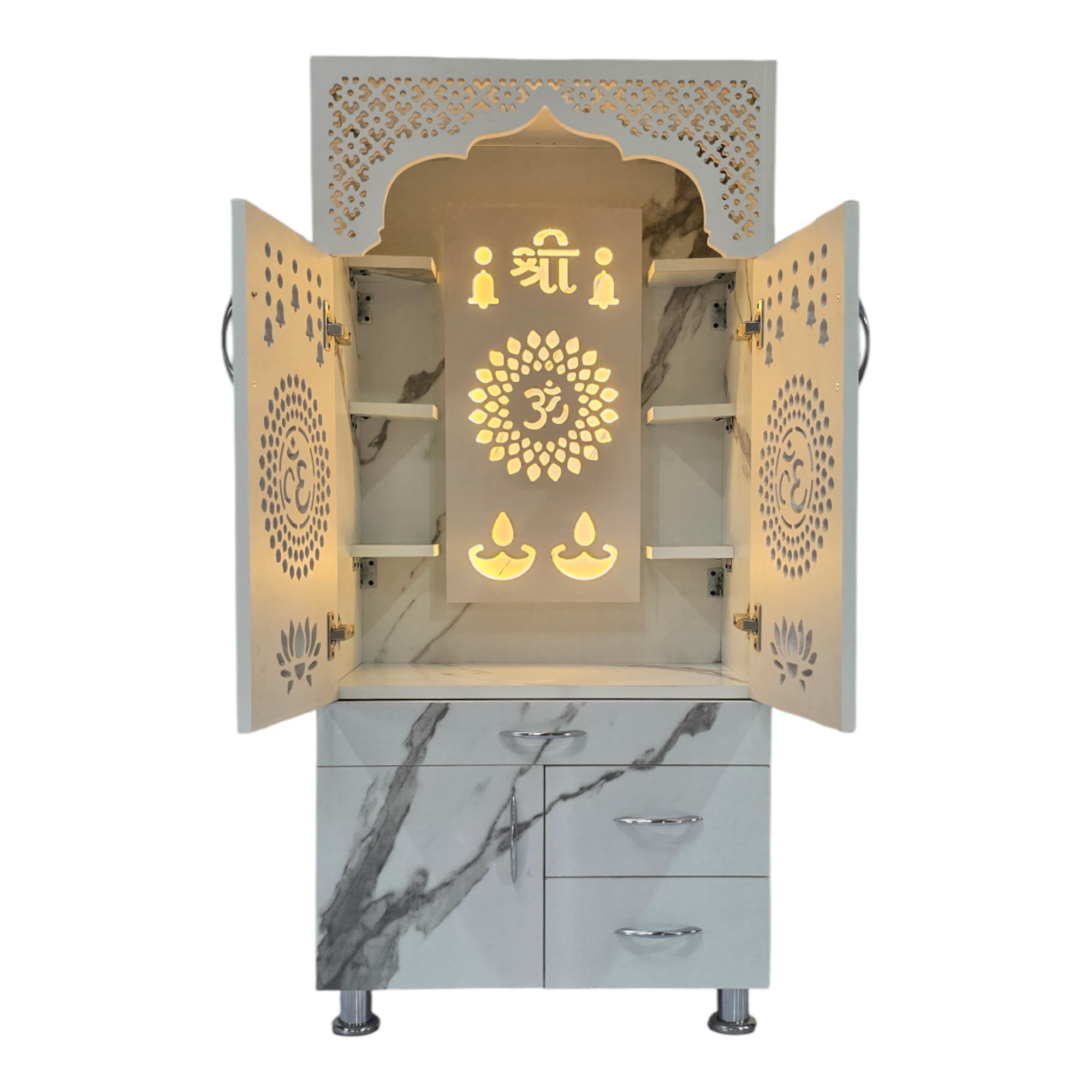 Blend timeless spiritual aesthetics with contemporary craftsmanship for a mandir that suits your home’s style.